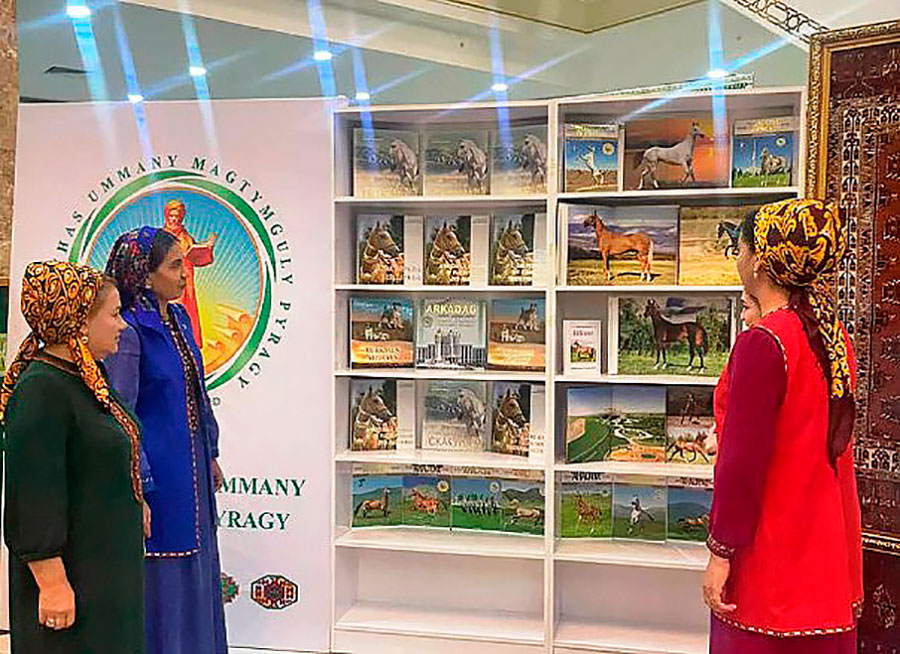 Türkmenistanyň Döwlet medeniýet merkeziniň Döwlet kitaphanasynyň daşary ýurt dillerindäki edebiýat bölüminde türkmen halkynyň Milli Lideri, Halk Maslahatynyň Başlygy Gurbanguly Berdimuhamedowyň türkmen halkynyň baýlygy we buýsanjy bolan ahalteke bedewlerine bagyşlanan kitaplarynyň sergisi açyldy.